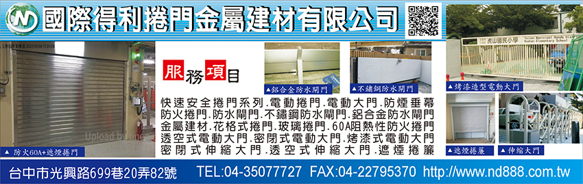 快速安全捲門、電動捲門、電動大門、防煙垂幕、防火捲門、防水閘門、伸縮大門、快速捲門、不鏽鋼防水閘門、鋁合金防水閘門、金屬建材、花格式捲門、玻璃捲門、60A防火捲門、60A阻熱性防火捲門、烤漆式電動大門、透空式電動大門、密閉式電動大門、透空式電動大門、密閉式電動大門、半密閉式電動大門、烤漆式電動大門、密閉式伸縮大門、透空式伸縮大門、氣密隔煙幕、半密閉式伸縮大門、穿孔半密閉式伸縮大門、止滑器、不鏽鋼配件、銅套配件、一體成型合成銅套、雙開伸縮門、烤漆式大門、不銹鋼捲門、不銹鋼捲門、國際得利、防火閘門、不鏽鋼防火捲門、不銹鋼防火捲門、台中防煙垂幕、台中快速安全捲門、台中電動捲門、台中電動大門、台中防火捲門、台中防水閘門、台中伸縮大門、台中金屬建材、台中防火捲門、台中玻璃捲門