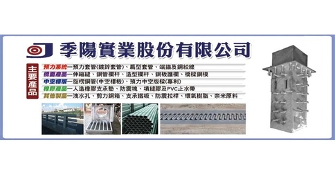 季陽實業股份有限公司是一家全方位的企業,擅長經銷買賣、生產製造、加工代工和施工安裝等多項業務。我們提供的關鍵產品包括預力套管、扁型套管、端錨及鋼絞線、伸縮縫、鋼管欄杆、造型欄杆、鋼板護欄、橋樑護欄、橋樑鋼模、旋楞鋼管、預力中空版樑(專利)、人造橡膠支承墊、防震塊、填縫膠及PVC止水帶、洩水孔、剪力鋼箱、支承鐵板、防震拉桿、環氧樹脂和奈米原料等。我們的服務地區遍及全省,不論您的項目規模如何,季陽實業股份有限公司都能夠提供高品質的產品和專業的解決方案,以滿足您的需求。無論是材料供應還是施工安裝,我們都致力於為客戶提供可靠的支持和服務。