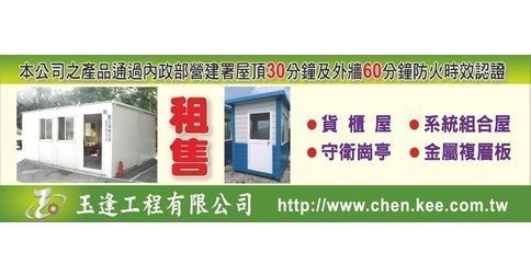 組合屋、組合房屋、貨櫃屋、崗亭、複合式金屬板外牆、複層式岩棉烤漆板、複層式岩棉金屬板、複層式蜂巢板無塵、烤漆鋼板、系統式工程、快速屋、科技廠房、鋼構廠房、玉逢系統防水複層板外牆系列、金屬複層板、系統組合屋、守衛崗亭、防火外牆