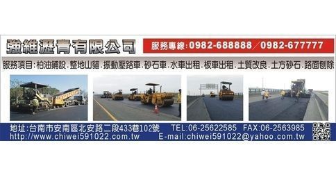 瀝青鋪設工程、砂石級配、整地、壓實、彩色瀝青鋪設、RA1還原劑、柏油瀝青工程、柏油瀝青舖設、路面整地工程、彩色瀝青舖設路面、AC柏油舖設路面、柏油瀝青、山貓出租、瀝青混凝土路面舖設、貨車出租、壓路機出租、振動壓路車、砂石車、瀝青混凝土拌合機、RA1瀝青再生劑、RA5瀝青再生劑、柏油舖設、瀝青路面、整地山貓、振動壓路機、砂石車、水車出租、板車出租、土質改良、土方砂石、路面刨除、路面整地、機械租工、台南柏油鋪設、台南整地山貓、台南水車出租、台南砂石車、台南震動壓路機、AC柏油、瀝青、山貓、改質瀝青AR8000、彩色瀝青、鋪柏油工程、鋪柏油路、舖瀝青、柏油路面、柏油鋪面、鋪設柏油、瀝青鋪設、瀝青路面工程、熱拌瀝青、改質瀝青3型、低硫燃料油