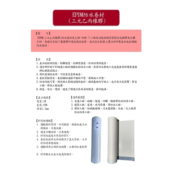 劦翊實業有限公司 - EPDM防水卷材-三元乙丙橡膠產品