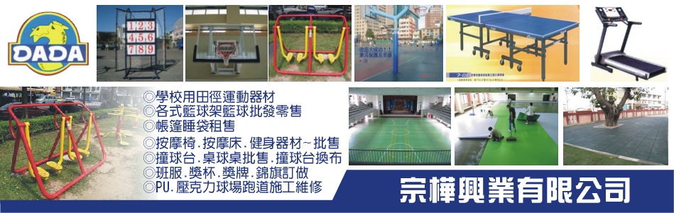 本公司專營學校用田徑運動器材,各式籃球架、籃球批發零售,帳篷、睡袋租售,按摩椅、健身器材批售,撞球台、桌球桌批售,撞球台換布,班服、獎杯、獎牌、錦旗訂做。