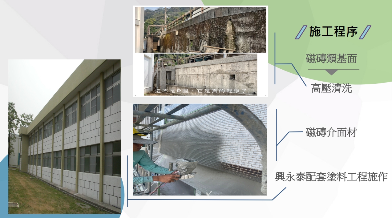 提供完善的塗料配套措施,並於施作前會整理基面,清除多餘異物基面補強,並使用磁磚專屬介面材,讓塗料與磁磚面完全緊密貼合。