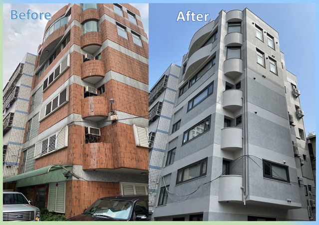 在施工前,我們向業主詳細說明解決方案、規劃設計和施工流程,之後認真嚴謹的完成每一個步驟,讓整個施工質量達到最高水準。最終,業主非常滿意我們的成品,整棟大廈脫胎換骨煥然一新,與鄰近的大廈形成鮮明的對比。