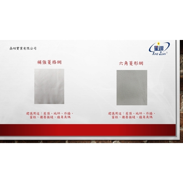 補強菱格網/建議用途:屋頂、地坪、外牆、窗框、樓層接縫、牆角角隅。