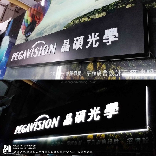 晶碩光學-黑色壓克力成型燈箱鏤空雷切、10mm水晶背光字