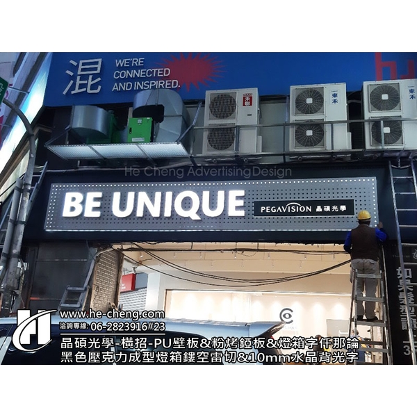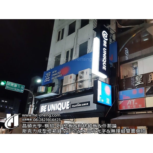 晶碩光學-橫招、PU壁板、粉烤錏板、燈箱字仟那論、黑色壓克力成型燈箱鏤空雷切、10mm水晶背光字