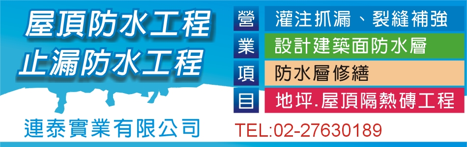 舉凡:灌注抓漏、裂縫補強、設計建築面防水層、防水層修繕、地坪及屋頂隔熱磚工程,各種疑難雜症的漏水,本公司均可以抓漏!