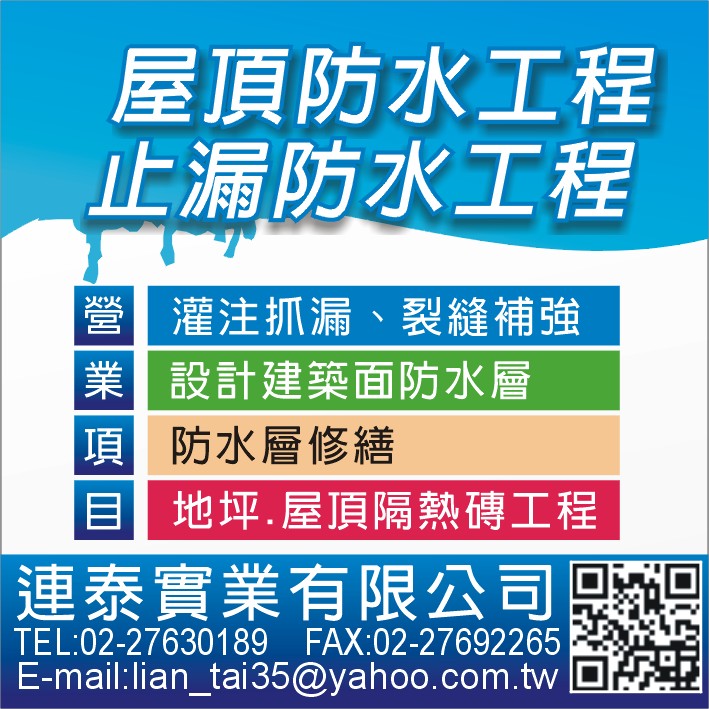 大台北地區之防水抓漏工程,請找擁有30十多年工程豐富經驗-連泰實業有限公司