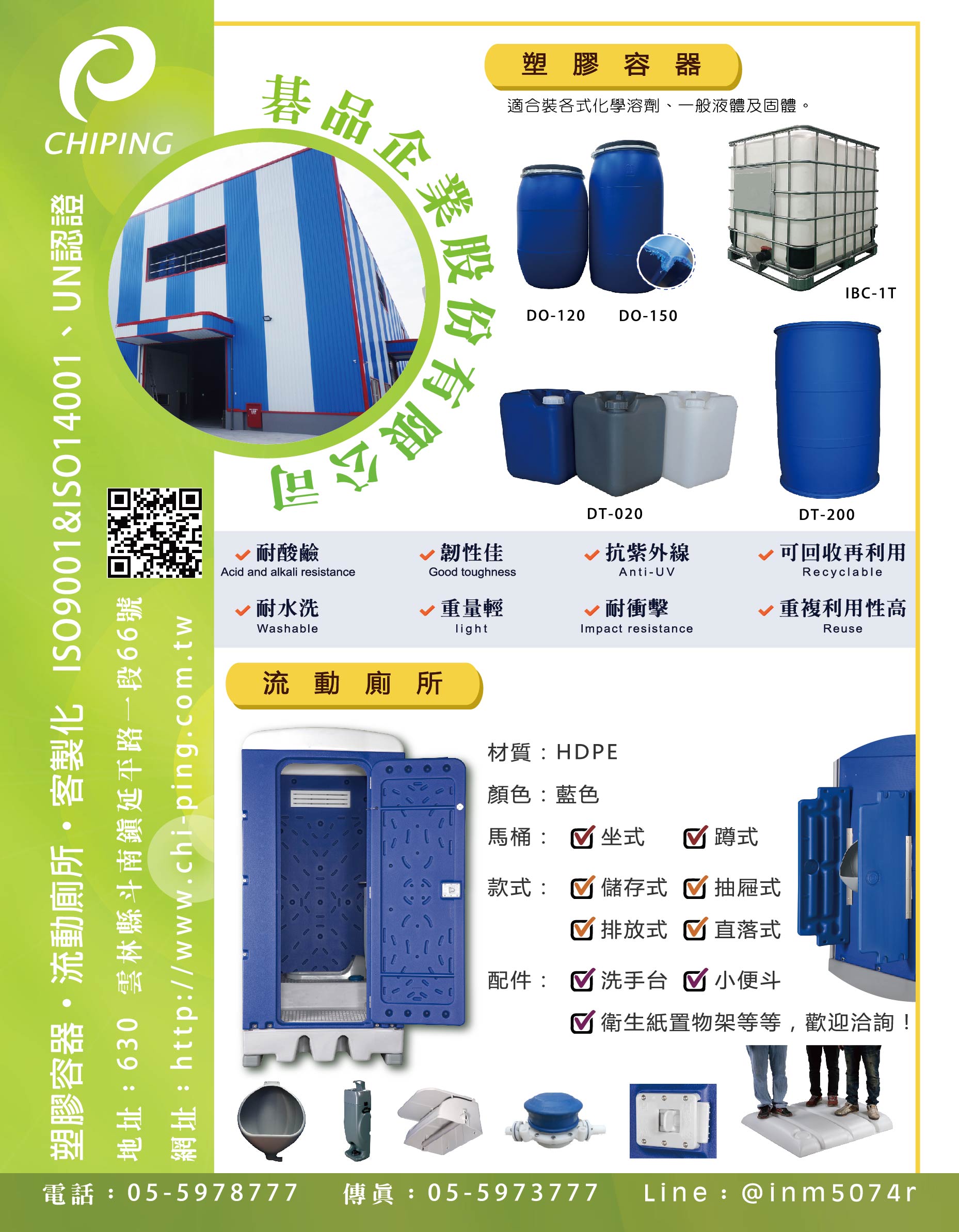 活動廁所、流動廁所、排放式流動廁所、儲存式流動廁所、抽屜式流動廁所、IBC桶、一噸桶、淋浴間、小便斗、隔板、折合桌椅、活動式洗手台、環保儲存式流動廁所、環保抽屜式流動廁所、環保淋浴間、流動淋浴間、環保塑膠小便斗、塑膠小便斗、活動式洗手台、洗手台、環保會議桌、會議桌、安全開關折合會議桌、中空折合椅、雪橇、安全門鎖、衛生紙架、衛生紙架+置物板、伸縮置物箱、大小置物箱、配件、碁品、排放式流廁、儲存式流廁、抽屜式流廁、塑膠容器、萬用桶、化學桶、化工桶、化學容器、抗酸鹼容器、中空成型容器、中空成型製品、HDPE桶、20公升塑膠桶、25公升塑膠桶、30公升塑膠桶、50公升塑膠桶、60公升塑膠桶、120公升塑膠桶、150公升塑膠桶、200公升塑膠桶、1000公升塑膠桶、1噸塑膠桶、IBC桶、貝克桶、雲林流動廁所、雲林塑膠桶、雲林小便斗