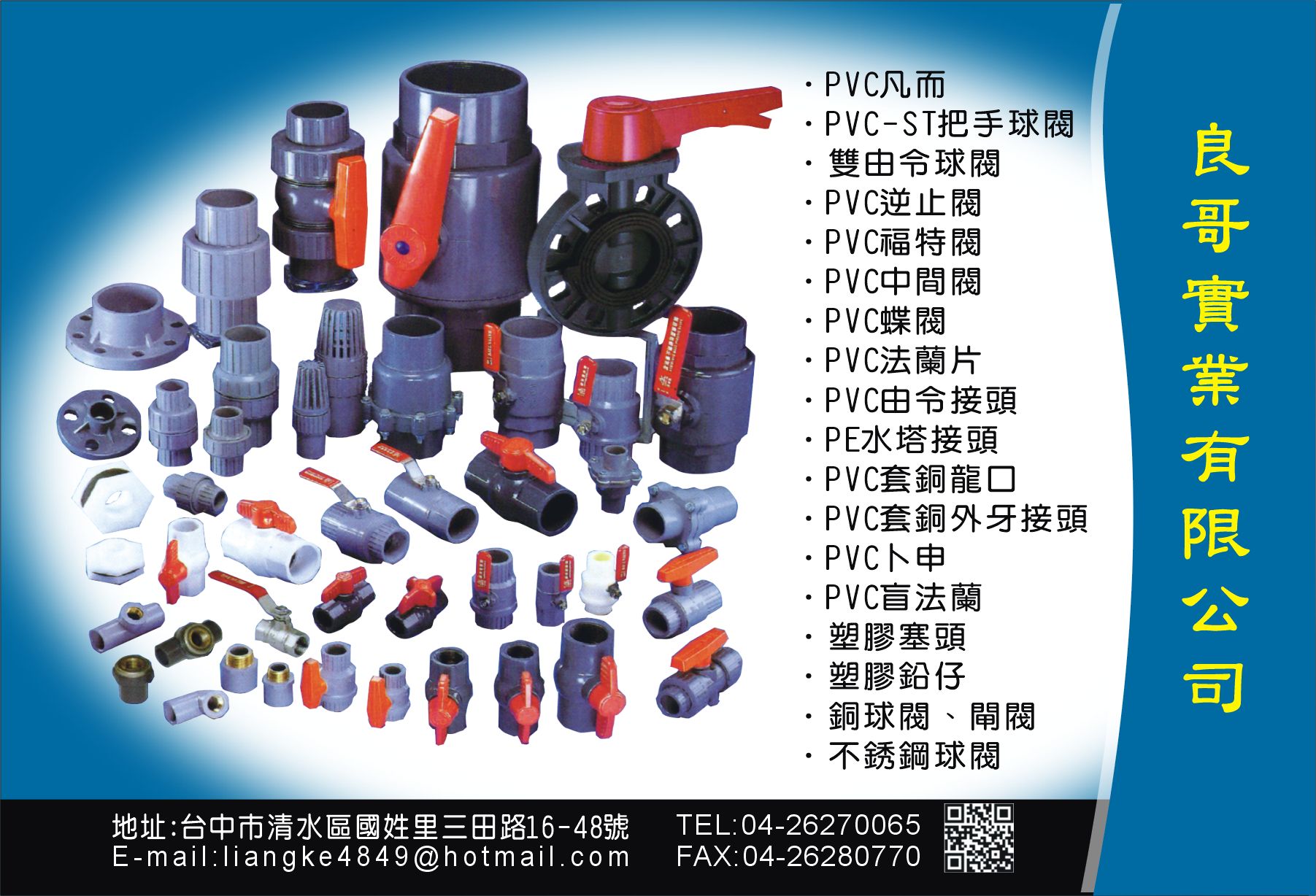 本公司專業生產各式閥類,舉凡:PVC凡而、PVC-ST把手球閥、球閥、銅球塞凡而、雙由令球閥、PVC逆止閥、PVC福特閥、PVC中間閥、PVC蝶閥、PVC法蘭片、PVC由令接頭、PVC水塔接頭、PVC套銅龍口、PVC套銅外牙接頭、PVC卜申、PVC盲法蘭、塑膠塞頭、塑膠鉛仔、銅球閥、閘閥、不銹鋼球閥、逆止閥、蝶閥、法蘭片、銅逆止閥類、接頭、排氣閥、全流量球塞閥、束口接頭、橫式逆止閥、銅球塞、銅牙閥接、ST束口彎、固定片、蝶型球塞閥、內外牙球塞閥、標準型球塞閥、套銅龍口彎、耐高壓軟筒凡而、PVC塑膠接頭、套銅接頭另件、落水頭、一體式球塞閥、試壓閥、閥類、安全閥、考克、針閥、快速接頭、平衡閥、氧氣瓶閥、金屬零件、球頭、電磁閥、球形閥、止回閥、PE水塔接頭、水電接頭配件...等。