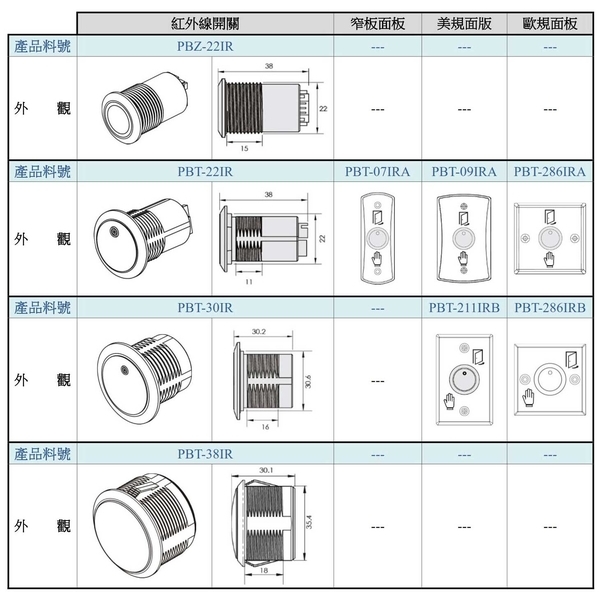 PBZ-22IR: DC10~24V 紅外線非接觸式感應開關, 感應距離可調整:3~10公分