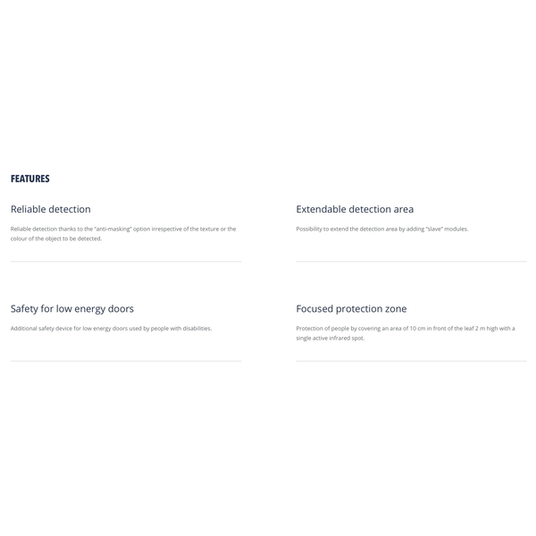在通過位於門扇上 2 m 高處的單個主動紅外光點覆蓋的門前 10 cm 區域中,保護人員安全。