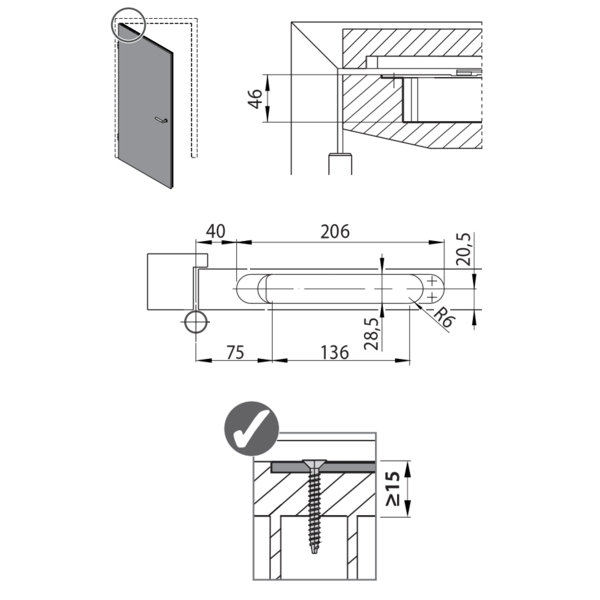 與表面安裝版本一樣,它在打開和關閉方向上也有一個拉入阻尼器,可以在打開角度上單獨調整。