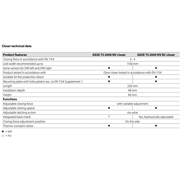 根據 EN 1154 關閉力 : EN 2 - 4