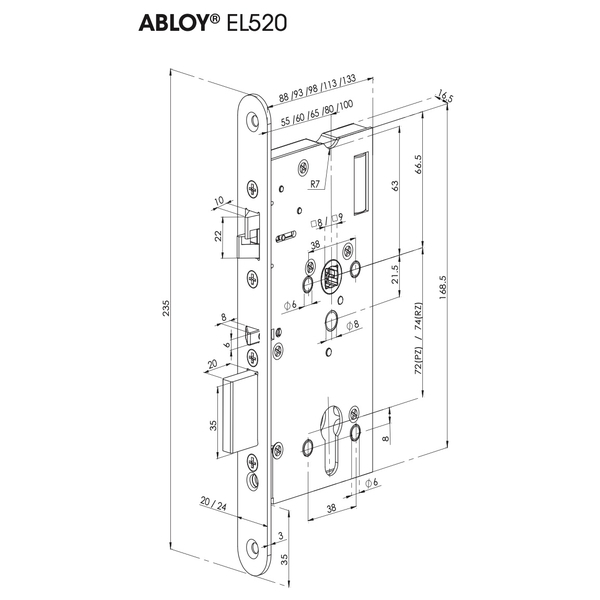 EL520 具有 EAC 的指示,此電動鎖需要控制盒 EA420。