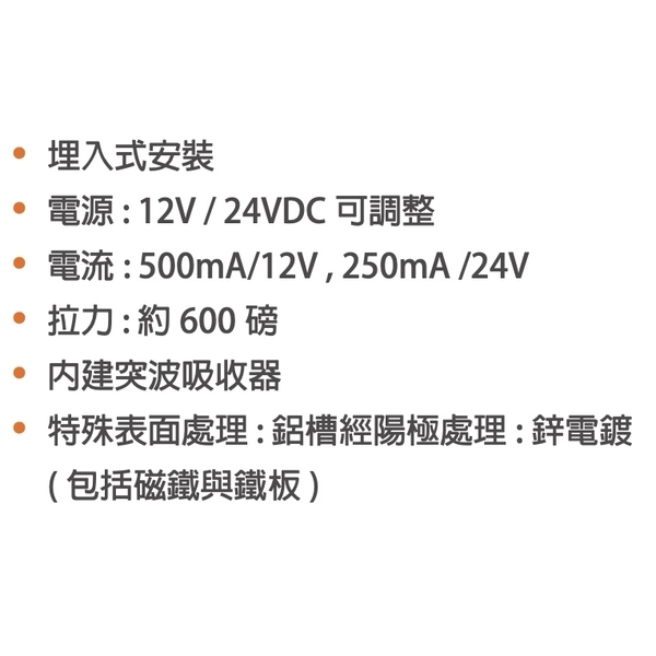 • ASTER MD-S01T 600磅埋入型磁力鎖 Magnetic Lock