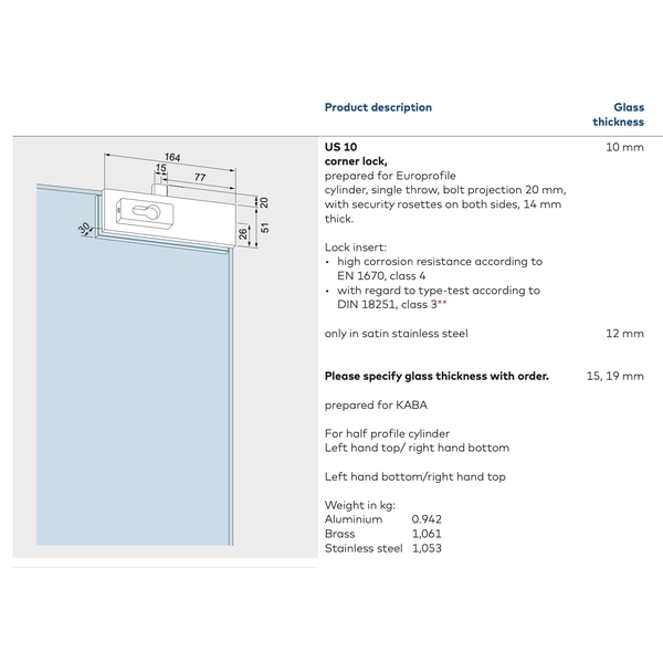 DORMAKABA US-10 玻璃門鎖 Corner Lock產品說明