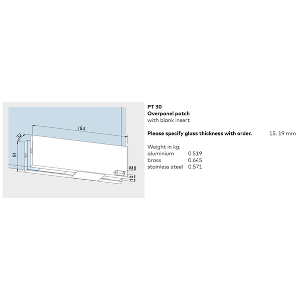 DORMAKABA PT-30 玻璃門頂上夾具/上包角 Overpanel Patch產品說明