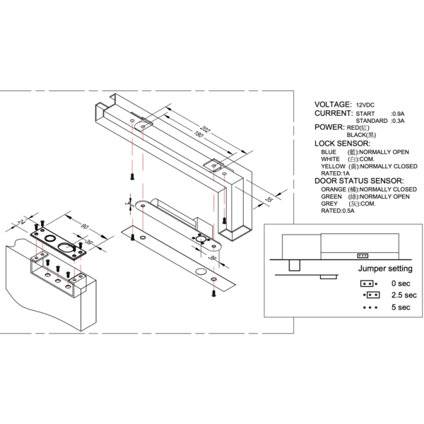 ∙ Bolt : 15.5 DIA, stainless steel 17mm throw