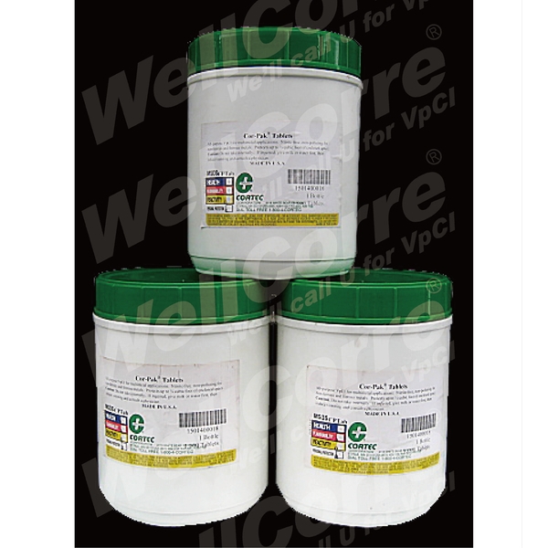 Cor-Pak 防銹錠是使用於完全氣密包裝環境中的產品,它能提供非常有效的防銹保護。由於它是一種以氣相分子抑制保護金屬的產品,不論金屬或非鐵金屬,它都能達到長達24個月的銹蝕抑制保護效果。在它的成分中不含任何有害化學物質,如:亞硝酸鹽、磷酸鹽、矽酸鹽等,使用上非常方便及安全。