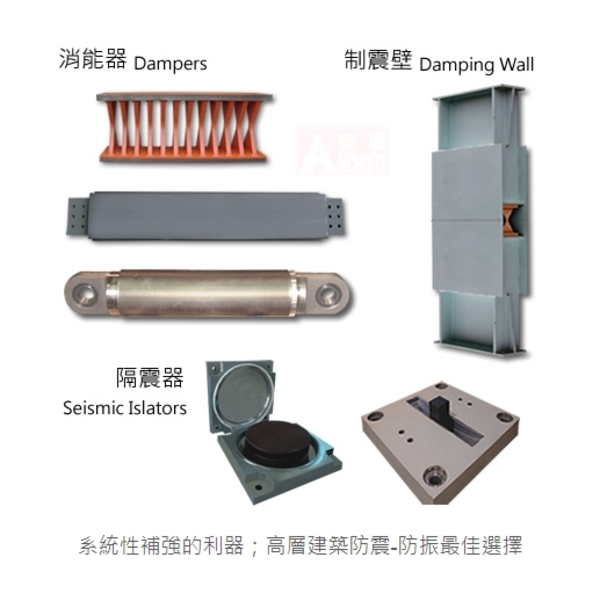 安固AD消能減震系統是以特殊金屬材料及高性能複合材料構成,利用其減震材料的變形、摩擦或粘滯阻尼來吸收震動能量,廣泛應用於減震、防振的建築結構或設備系統,其眾多優點如下:
