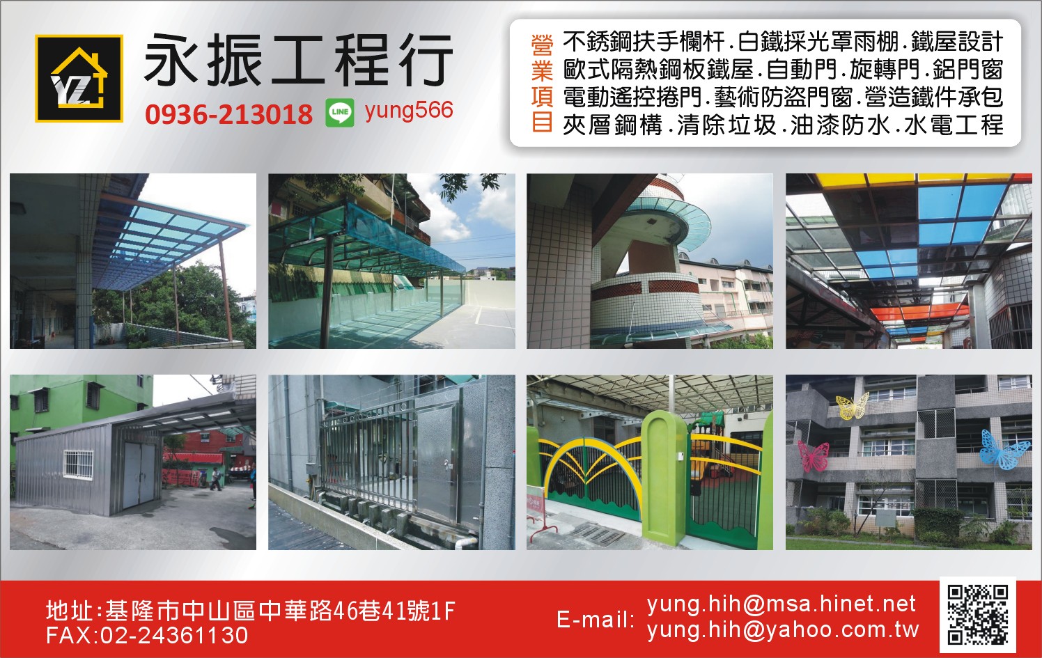 不銹鋼製品、不銹鋼鐵皮屋、不銹鋼欄杆扶手、白鐵採光罩雨棚、屋頂鋼板腐蝕更換、鋁門窗、鐵屋設計、歐式隔熱鋼板鐵屋、自動門、旋轉門、電動遙控捲門、樓梯欄杆、藝術防盜門窗、營造鐵件承包、夾層鋼構、鋼構整修、鋼構代工、清除垃圾、油漆防水、水電、水電工程、不銹鋼氟碳烤漆鐵件、鍛造鐵件承作、雷射藝術鐵件、白鐵採光罩、白鐵遮雨棚、不鏽鋼欄杆扶手、玻璃採光罩、遮雨棚、雨庇、停車棚、車庫遮雨棚、藝術防盜不鏽鋼門窗、鋼構斜屋頂、磁磚修補、泥工、土水工程、房屋整修、鐵件代工、打牆、水電接管、水電配管、基隆不銹鋼製品、基隆不銹鋼鐵皮屋、基隆採光罩、基隆遮雨棚、基隆鐵皮屋、基隆鋼構、基隆電動遙控捲門、基隆水電接管、基隆自動門、基隆防盜窗、基隆鋁門窗、基隆油漆防水、基隆欄杆扶手