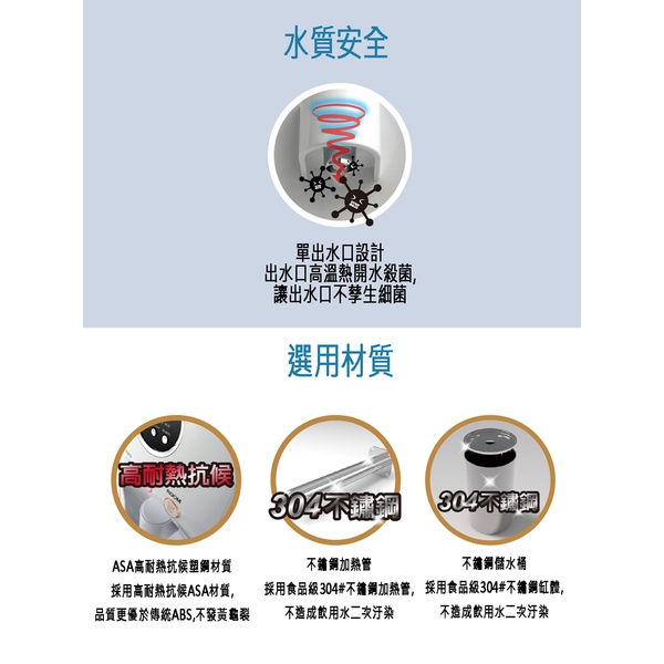 可選購配備:紫外線UV殺菌系統、漏水偵測