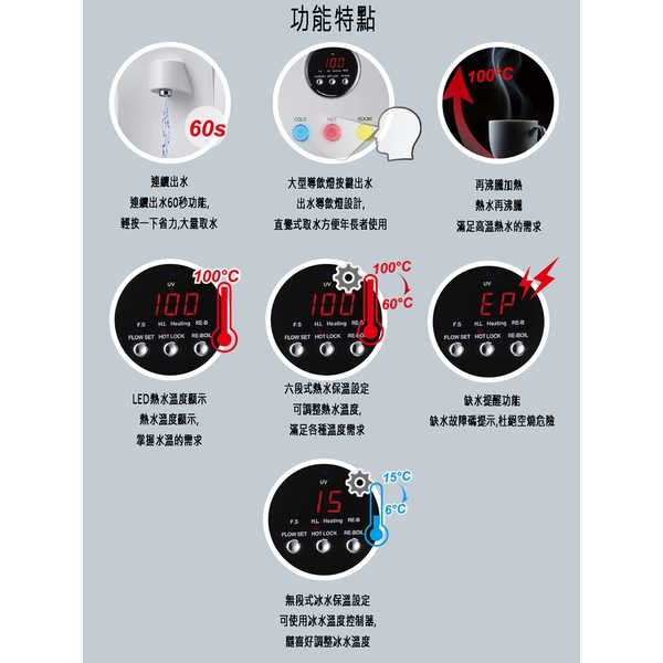 產品容量:熱水2公升 / 冷水 2.2公升 / 冰水 2.8公升