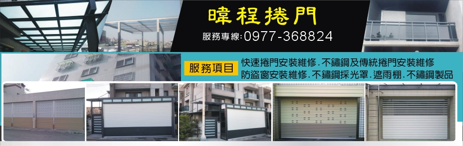 暐程快速捲門累積了數十年的安裝經驗,秉持著服務客戶的熱忱,深獲客戶肯定。專業製作安裝不鏽鋼採光罩、防盜白鐵窗及不鏽鋼製品;奕精修各廠牌捲門,一般鐵捲門門片上捲、卡住、脫軌、變型等問題。價格合理公道、不坐地起價,專業維修、新品設計安裝歡迎來電詢價,維修現場估價。任何品牌 如:格萊得、安進、華納、倍速特、6A、3S 或各快速捲門均可維修。維修/估價專線:04-25391091/0977-368-824 林先生