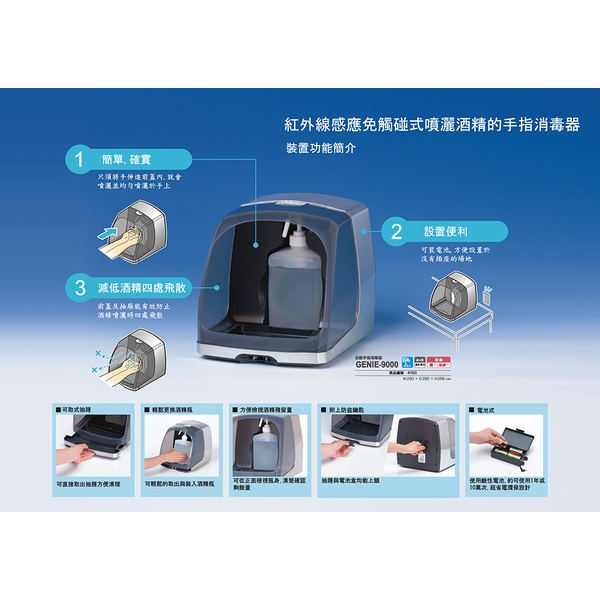 自動噴霧式手指消毒器GENIE-9000產品說明