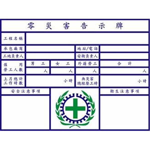 • 零災害告示牌