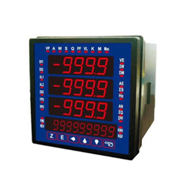 • 三輸入DC多功能集合式電表,RS-485二段警報,96×96mm,可量測三組DCV,DCA,DCW,DCWH,具雙向量測功能