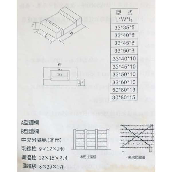刺線柱、圍牆柱、圍牆板、中央分隔島