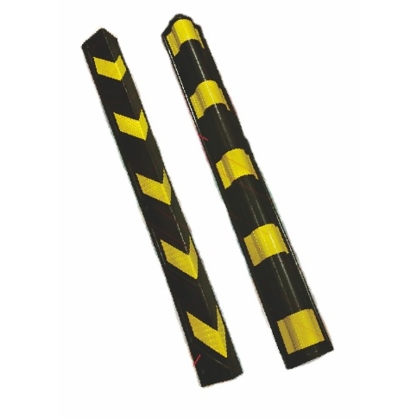 由耐用橡膠製成,具吸震抗衝擊特性,搭配黃黑警示條提升可見性,護角多附預鑽孔,便於螺栓或黏貼固定。