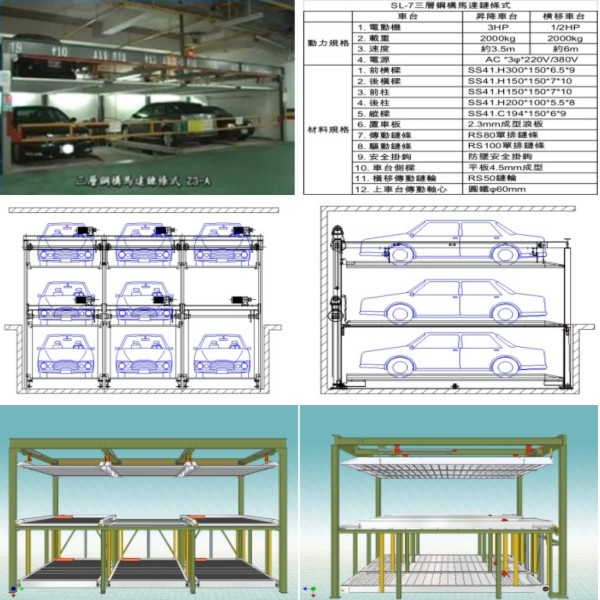 SL-7 三層鋼構馬達鏈條式產品介紹 - 碩立停車設備股份有限公司