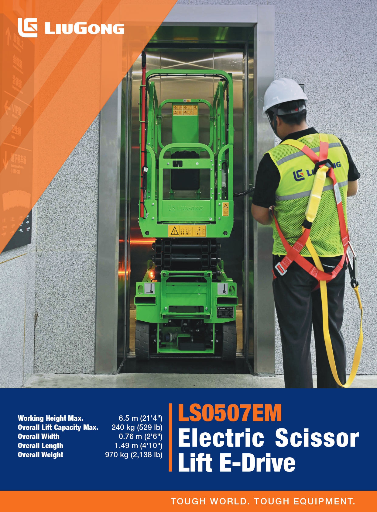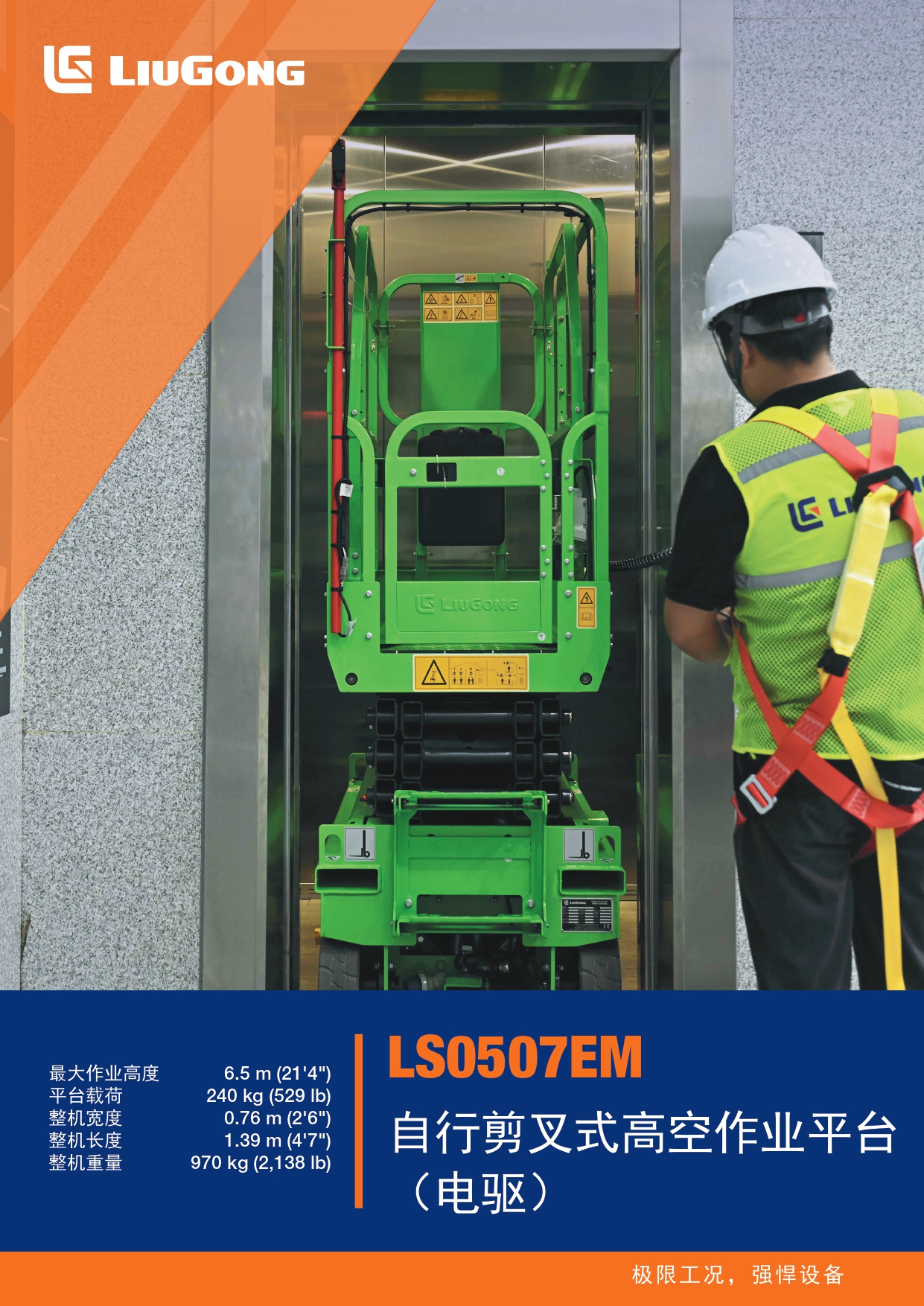 這款LS0507EM 自行剪叉式高空作業平台(電驅),專為室內與狹小空間作業打造。電動驅動零排放、低噪音,適合商辦、商場、廠房與電梯內進出使用。機身寬度僅約0.76米,靈活穿梭走道不卡關;最大作業高度6.5米,平台載重達240公斤,穩定承載人員與工具。結構紮實、操作直覺,兼顧安全與效率,是高空維修、安裝與保養作業的理想選擇。