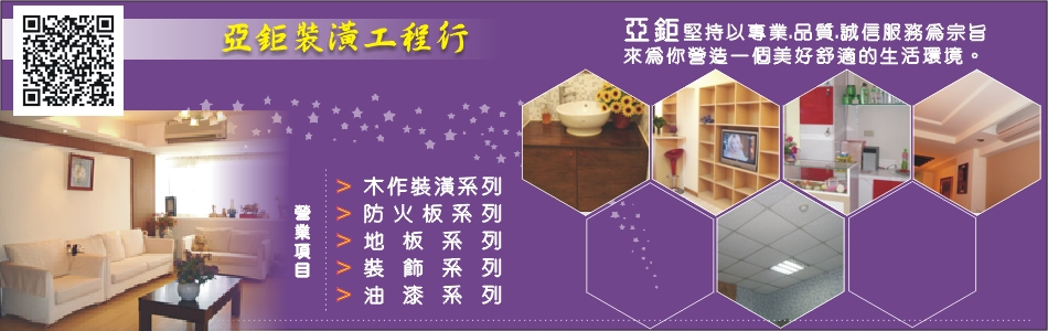 亞鉅成立於1993年在成立之前,已有20年以上的實務經驗,堅持以專業、品質、誠信服務為宗旨,來為你營造一個美好舒適的生活環境,並且用心去聆聽消費者的需求,來打造屬於自己溫馨的家。