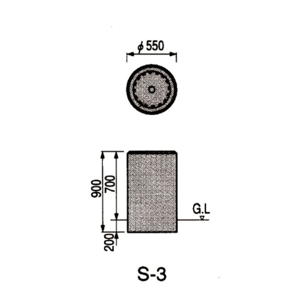 此款圓形垃圾桶直徑550mm、高度900mm,其中200mm為地埋段。