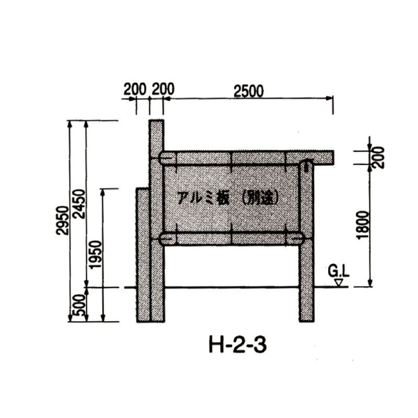 這款框構式導覽架總高2950mm,主結構寬2500mm、地面以上高度2450mm,底座高500mm,搭配預留鋁板安裝空間。