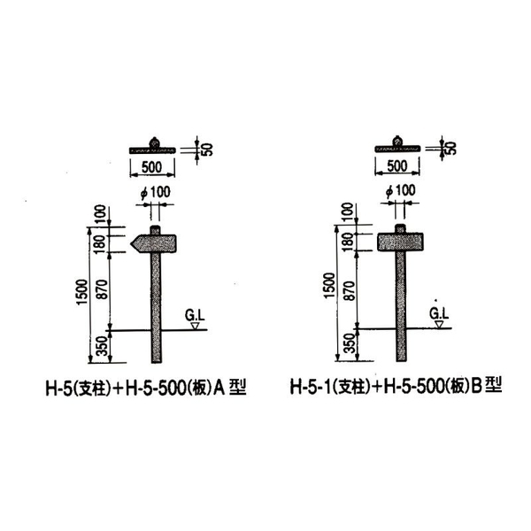導引指示牌總高1500mm,採φ100mm支柱搭配500×180×50mm板材,地面以上高度870mm,埋設深度350mm,穩固美觀兼具實用性。