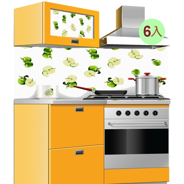 噴水就黏 無膠式廚房防污防水快速壁貼組 6入組青蘋綠