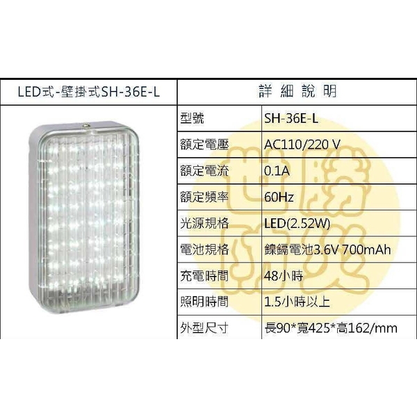 壁掛式LED燈產品 ,型號:SH-36E-L - 世勝防災設備工程有限公司