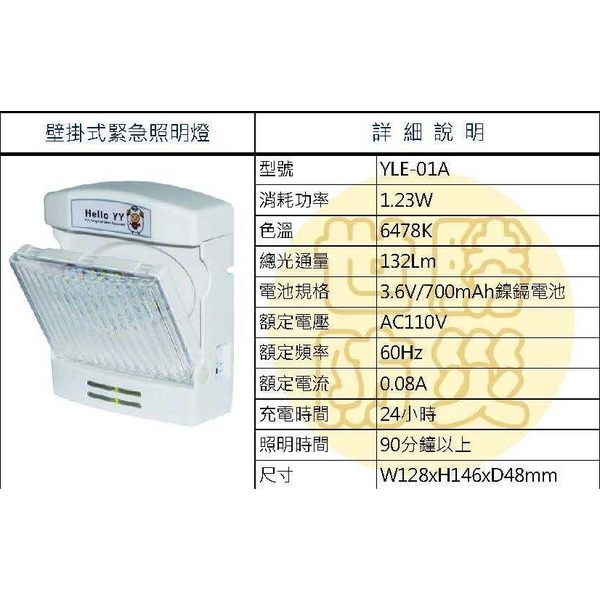 壁掛式緊急照明燈產品 ,型號:YLE-01A - 世勝防災設備工程有限公司
