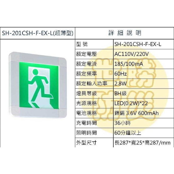 超薄型緊急出口燈 SH-201CSH-F-EX-L