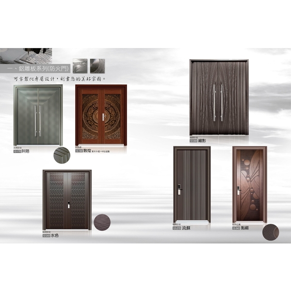 玄關門、防火門、銅雕門、鋼木門、房間門、浴廁門、拉門、硫化門、車庫門、通風門、鍛造門、三合一通風門、氣密窗、玻璃防火門、橫拉式防火門、庭園門、防盜門、鍛雕鋼板、180°前後推開防火門、F60A木製防火門、F60A鋼製防火門、鋼木複合防火門、陶瓷玻纖門、F60A木製防火門FRP玻纖、F60A防火鋼木門鋼框鑄鋁板、F60A防火鋼FRP玻纖、F60A防火鋼木門木質肚板、F60A防火鋼木門CNC、玻璃防火門、鋼木複合防爆門、木門、浴室門鍛造門、民宿門、高級白鐵玄關、高級鑄鋁、淋浴拉門、木製防火門、鋼製防火門、玻璃防火門、門鎖、安得省搗擺、防火鋼木門、陶瓷玻纖門、溝槽門、鋁合金浴廁門、鋁合金房間門、ABS浴廁門、晶雕彩繪門、氣密窗安裝、白鐵門安裝、鑄鋁門安裝、日式花鑄鋁門、宿舍門、白鐵穿梭管防盜門、直三段硫化銅、烤漆雙玄關、昶實浴廁門、南檜實木門、硫化銅防盜門、孔雀開屏鍛造花、金松木門、白鐵信箱門、半氣密窗、排骨門、ABS尿隔屏、屋頂後門