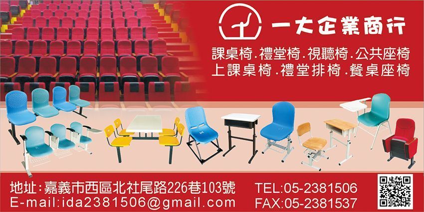 一大企業商行已經營20多年,專營於學校課桌椅、排椅居多,客戶遍及北中南、東部及澎湖、金門的學校或機關單位..等都在我們服務的範圍內。