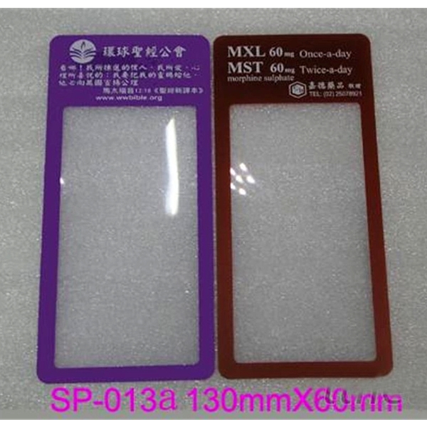 放大鏡、超薄放大鏡、名片全型、名片半型、書籤型、卡片型、閱讀型、奈米光放大鏡、全彩紙卡放大鏡、全彩紙卡手拿式放大鏡、文鎮放大鏡、文鎮放大棒、壓克力放大鏡、雙凸子母放大鏡、旋轉式放大鏡、眼鏡夾子型放大鏡、軟磁書籤放大鏡、PVC套