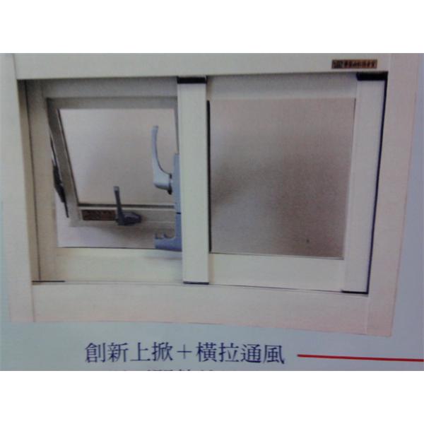• 使用時 左、右片玻璃可橫拉式 或外片玻璃選用 上掀式方向開啟(上掀開口約13公分) 通風遮雨(附兒童安全鎖)