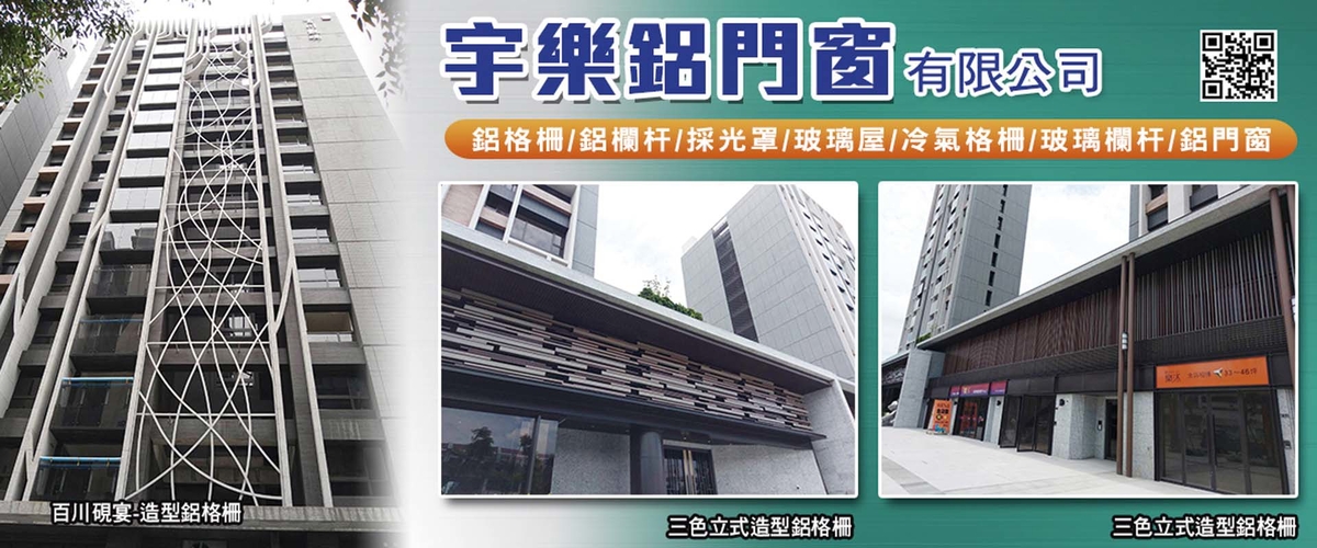 玻璃屋、鋁欄杆、玻璃欄杆、遮陽板、三色立式造型格柵板、鋁格柵、冷氣格柵、造型鋁格柵、陽台格柵、弧形造型鋁格柵、陽台花格、鋁門窗、採光罩